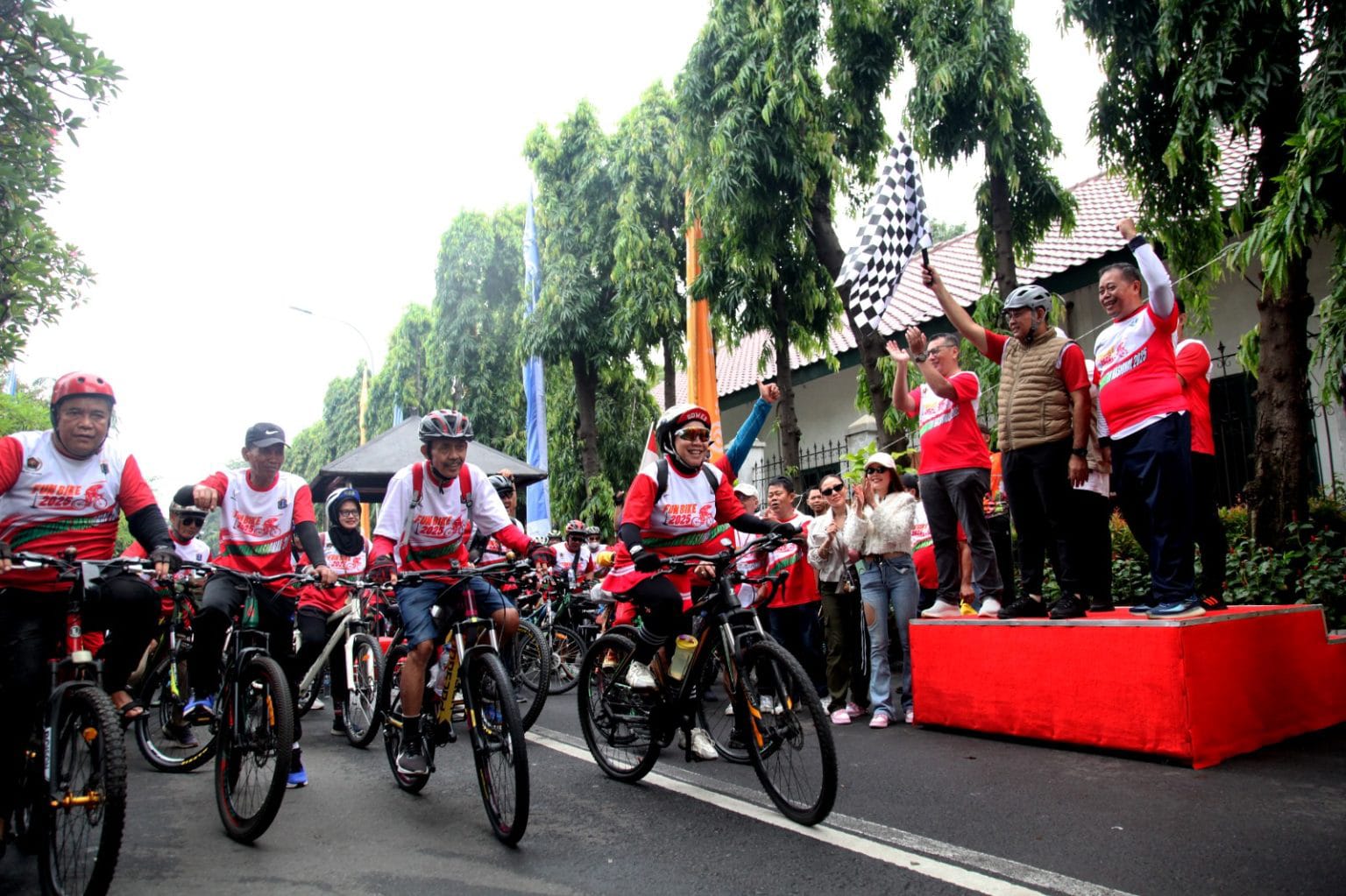 Meski seragam, gaya peserta tetap beragam dan mencuri perhatian. Ada yang datang membawa sepeda klasik ontel, sepeda lipat bergaya urban, MTB kekar, hingga sepeda anak yang dihias pita dan balon. Beberapa peserta bahkan tampil nyentrik dengan helm lucu dan kacamata besar, menambah semarak acara.
