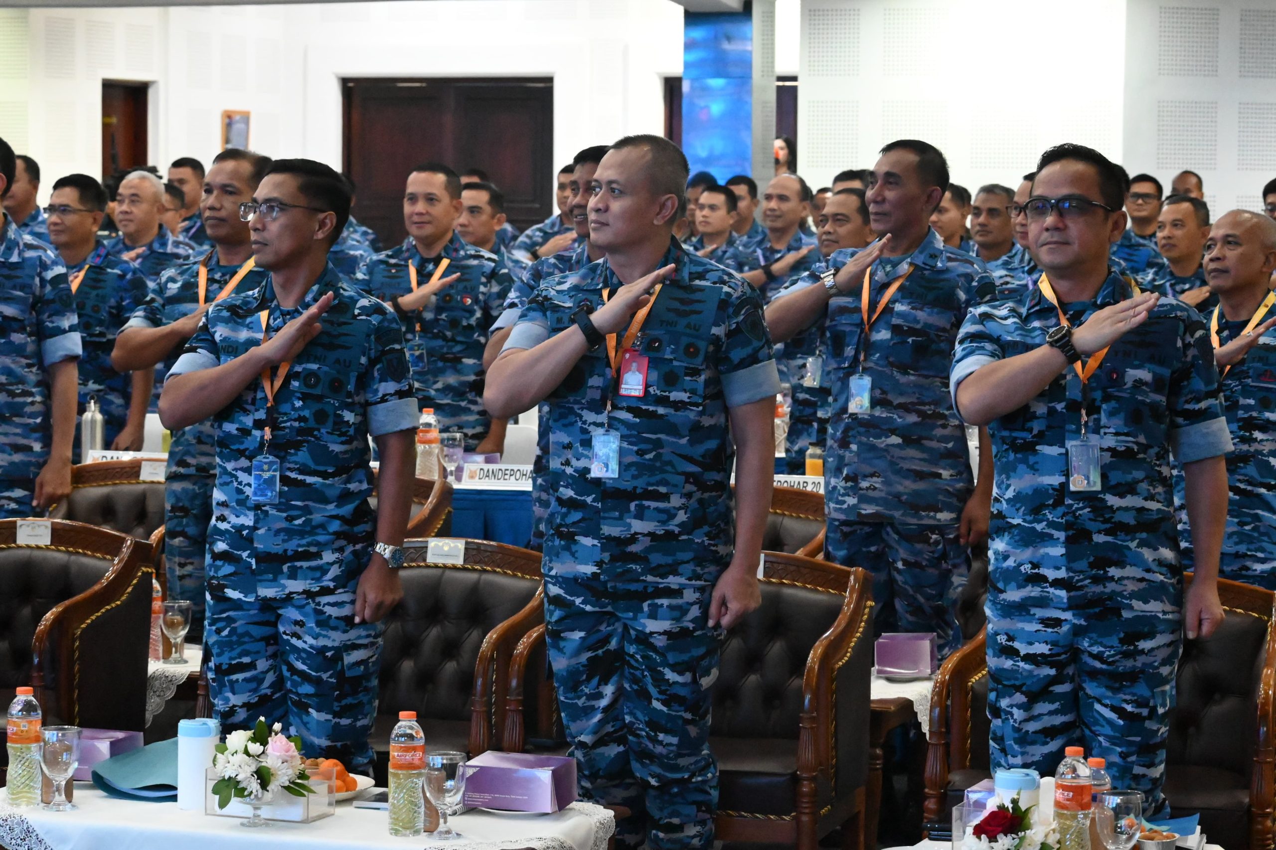 Hadir dalam Rapim TNI tahun 2025 Para Pejabat Utama dan Komandan Satuan di Jajaran TNI Angkatan Udara maupun para pejabat jajaran TNI Angkatan Udara yang hadir melalui vicon di satuan masing-masing.