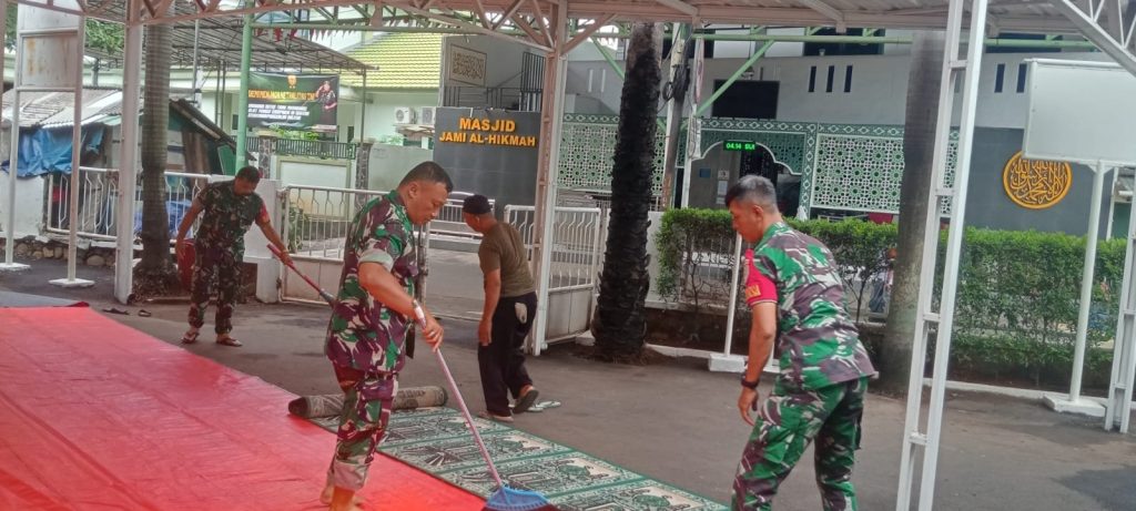 Koramil 01/Jatinegara Wujudkan Kepeduliannya, Gelar Karya Bakti Bersihkan Tempat Ibadah