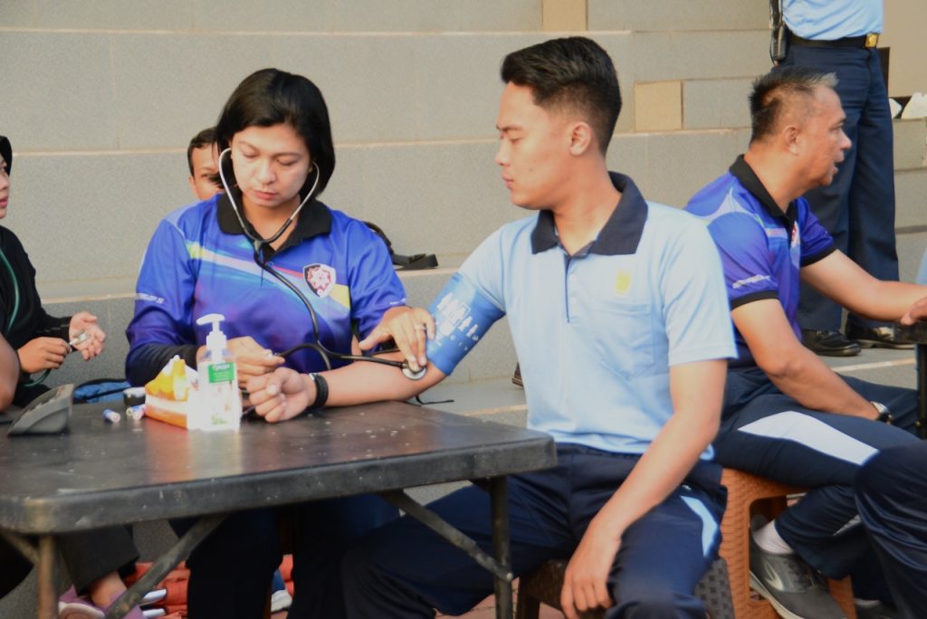 Untuk mengetahui kondisi kesehatan dan menjaga keselamatan peserta tes, setiap personel yang akan melaksanakan tes kesemaptaan jasmani melakukan pemeriksaan tekanan darah.