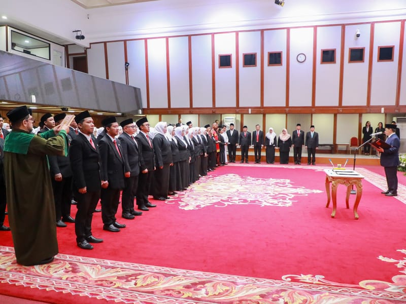 Jakarta, Hariansentana.com.- Gubernur DKI Jakarta, Pramono Anung resmi melantik 100 pejabat fungsional di lingkungan Pemerintah Provinsi (Pemprov) DKI Jakarta. Acara pelantikan dan pengambilan sumpah/janji jabatan berlangsung di Balai Agung, Balai Kota DKI Jakarta, Senin (30/6).